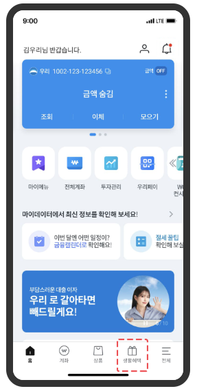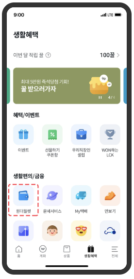 2️⃣생활혜택 홈에서 원더월렛 선택