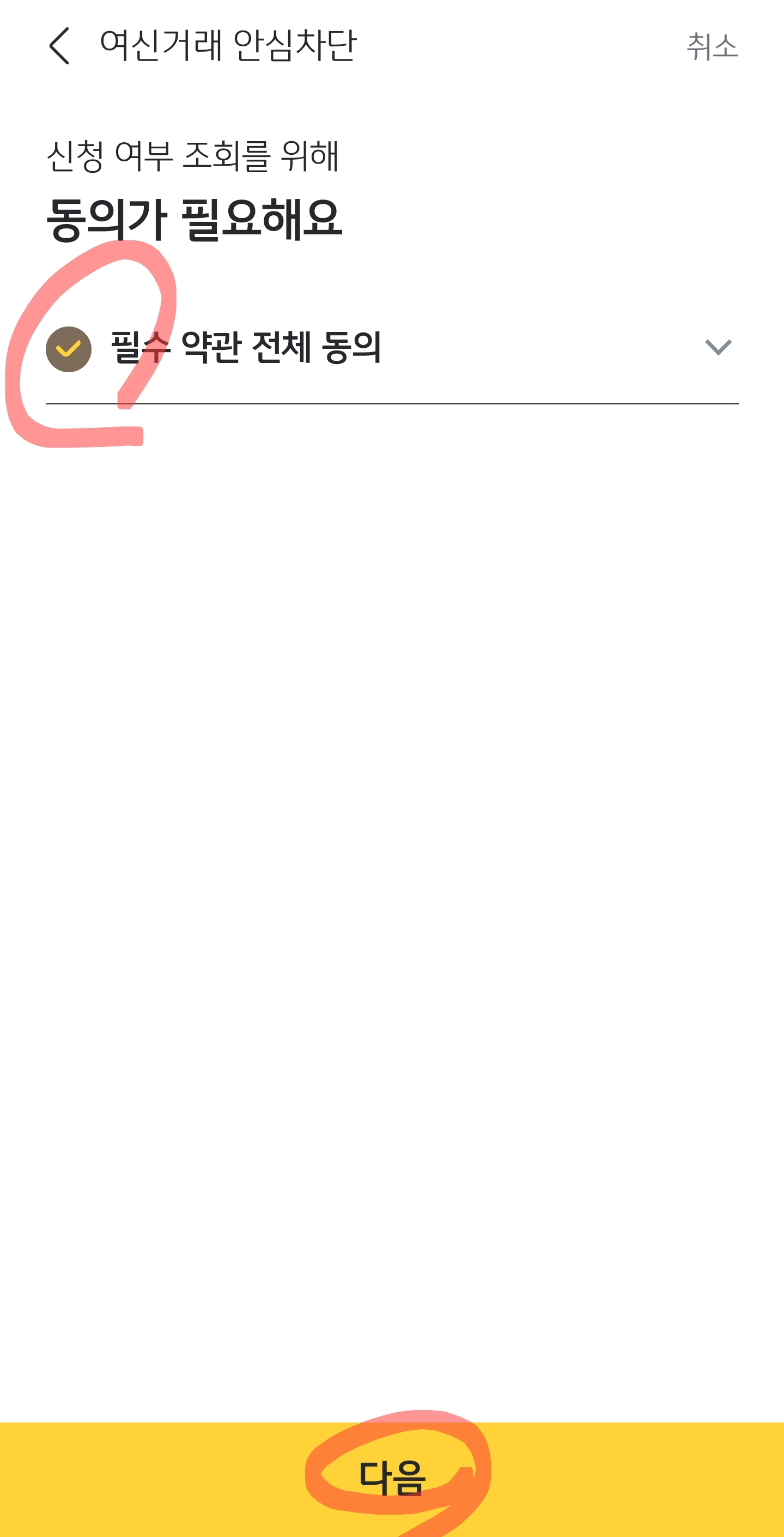 7. 간편비밀번호 입력 후 안심차단 서비스 신청 클릭하여 신청을 완료