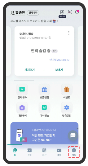 3️⃣하나원큐 홈에서 전체메뉴 선택
