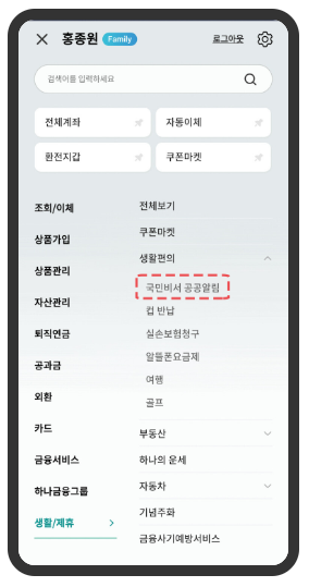 4️⃣생활/제휴 > 국민비서 공공알림 선택
