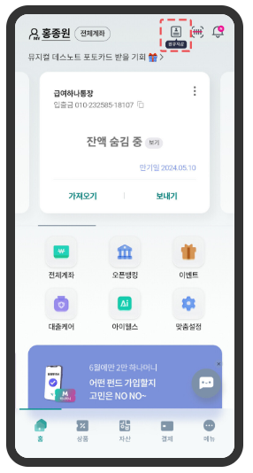 1️⃣홈에서 원큐지갑 선택