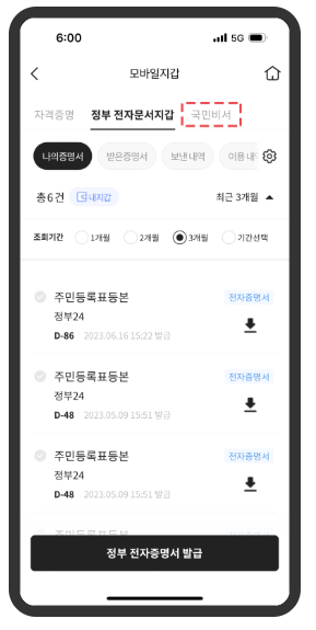 2️⃣모바일 지갑 홈에서 국민비서 선택
